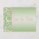 Postale Faire-part Damas vert et rose Enregistrer la date Carte posta