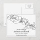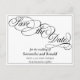 Un blanc formel et élégant enregistrer la carte postale date avec script de calligraphie noir.