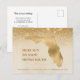 Emménager en Floride, c'est un peu un grand événement, surtout quand vous jouez à l'extérieur pendant que vos amis et votre famille du nord sont encore en train de pelleter la neige. Notre carte de annonce de nouvelle adresse comporte une carte de l'État de Floride en doré métallisé sur un fond ombré à paillettes dorées de luxe. Le texte au recto de la carte est d'une couleur dorée que l'on retrouve dans les paillettes elles-mêmes. Tout le texte au recto et au verso de la carte peut être facilement modifié avec votre propre texte et vos coordonnées sur le modèle de personnalisation.
