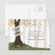 Un mariage de automne enregistre la carte postale de date illustrant l'illustration d'un arbre dans la forêt. L'arbre a des feuilles d'automne, des racines exposées, et un tronc enveloppé d'une bannière qui peut être customisé avec les noms de mariée et mariée.