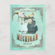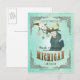 Green Aqua Save The Date carte postale avec carte du Michigan avec de jolis oiseaux sur les branches d'arbres.
