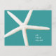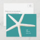 Simple grande étoile de mer sur fond sarcelle, carte postale de couleur bleu-vert avec texte personnalisé. Pour une personne seule ou une famille pour envoyer un avis abordable qu'ils ont déménagé sur la côte, rivage, plage, tropiques.