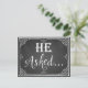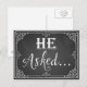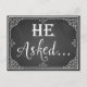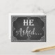 Il a demandé" Carte de fiançailles prop photo impression tableau noir