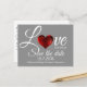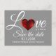 L'amour est dans l'air de mariage thématique, à l'exception de la carte postale date faite en gris clair, avec des graphiques d'un coeur brillant rouge. Personnalisez les champs de texte personnalisés en fonction de vos besoins. Excellente façon d'annoncer vos plans mariages à venir à l'avance.