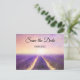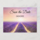 Enregistrez la carte postale Date avec un tableau de champs de fleurs de lavande. Idéal pour un mariage de style campagnard ou français, ou un mariage à thème violet, lavande ou lilas.