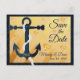 Ces ancre moderne et élégante/économies nautiques de conception la carte postale de date est une grande manière d'inviter votre invité à votre mariage de destination, près de la plage ou d'été - les caractéristiques de conception une ancre de bleu marine. Conception d'arrière - plan - coeurs d'or et rayures d'aluminium - une grande conception de thème de plage pour votre personnaliser de mariage le texte avec vous que les jeunes mariés appellent, datent, emplacement. Sentez-vous libre pour me contacter si vous avez besoin de l'aide avec la personnalisation ou si vous voudriez assortir des produits. Illustration par art et conception de ChanDraws.