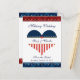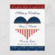 Une charmante carte postale sur le thème militaire pour annoncer à vos invités la date de votre mariage. Cette carte présente un drapeau américain en forme de cœur avec des étoiles et des rayures, dans les couleurs rouge, blanc et bleu. Le haut de la carte postale indique "Mariage Militaire". Le bas indique "Sauvegarder la Date" et une zone de modèle juste en dessous pour ajouter votre date spéciale. Le milieu du cœur comporte une zone prête pour que vous ajoutiez les noms de la mariée et du marié. La police est une élégante écriture bleu marine. Le verso des cartes postales comporte un joli message et une zone de fermeture pour signer les noms des mariés. Il suffit de les adresser, d'ajouter un timbre et vos cartes postales sur le thème militaire sont prêtes à partir ! Pour plus de cartes "save the date" sur le thème militaire, invitations, cartes de réponse, tim