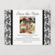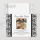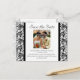 Un design élégant en dentelle damassé noir et blanc avec un thème de script sophistiqué pour encadrer votre photo mariage. Annoncez votre fiançailles avec ce damas noir et blanc de base enregistrer la carte postale date.