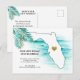Emménager en Floride est une grosse affaire, surtout quand vous jouez à l'extérieur tandis que vos amis et votre famille du nord sont encore en train de pelleter la neige. Notre carte postale d'annonce de nouvelle adresse présente une carte de l'État de Floride entourée de vagues de l'océan bleu et décorée d'un cœur doré et de feuilles de palmier ondulantes. Tout le texte au recto et au verso de la carte peut être facilement modifié avec votre propre texte et vos coordonnées. Ce design est également disponible en deux formats de cartes plates avec enveloppes et une étiquette d'adresse de retour.