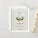 Annonce de déménagement pour les fêtes rustique élégante avec une illustration aquarelle d'un globe de neige avec une maison à l'intérieur et un fond vert sauge clair.