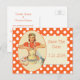 Mariage rétro Whimsical enregistrer la date carte postale faite dans un motif de pois orange et blanc, avec le graphique d'une cuisine femme rétro. Personnalisez le texte pour une façon amusante et économique d'annoncer vos plans mariages.