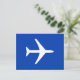 Avion blanc funky et élégant / Avion fond bleu Pilote / Vol / Aviation Texte personnalisé / Carte postale vierge. Une idée de cadeau cool / idée cadeau pour tous ceux qui aiment les objets uniques design personnalisé, les vibrations positives, l'aviation, le vol, le ciel, les avions, les pilotes, le thème du transport aérien, le minimalisme, etc. Baby shower, anniversaire, etc. Garçon, voler, aéronef, ailes, capitaine, jet, aéronautique, aérospatiale, météorologie, aéroporté, compagnie aérienne, compagnies aériennes, voies aériennes, aéroport.