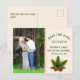 Beau mariage à thème d'hiver économiser la carte de poste de date, avec de l'espace, sur le devant, pour votre photo. Des graphismes d'un ruban d'or et de dentelle et d'une branche de pin avec des cônes de pin décorent l'avant de la carte. Personnalisez tout le texte pour lire ce que vous voulez.