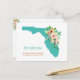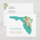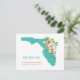 Une carte de Floride de couleur turquoise est embellie d'une belle cascade de fleurs d'hibiscus tropicales roses et corail sur notre carte postale de changement d'adresse "Plus de soleil ! Pas de neige !" La Floride a été nommée ainsi par Ponce de Leon au début des années 1500 en raison de l'abondance de variétés florales colorées représentées dans l'État du soleil. Tout le texte d'exemple au recto et au verso de la carte peut être facilement révisé avec votre propre message et vos coordonnées en utilisant le modèle de personnalisation. Cette carte fait partie de notre collection Floride Changement d'Adresse.