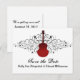 Parfait pour annoncer un mariage à thème rock and roll, ce rocker chic Swirls Guitar Save the Date Postcard en rouge foncé. Ce design unique comprend une guitare damassée flanquée de cascades d'élégantes fleurs tourbillonnantes. Facile à customiser, il suffit d'ajouter vos détails de mariage dans les espaces fournis. Cliquez sur le bouton "Customiser" pour trouver d'autres options de personnalisation.