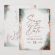 Cartes de Réservation de Mariage en Aquarelle Éthérée et Terre Cuite. Cette conception de mariage moderne est magnifiquement peinte à la main avec des couleurs riches parfaites pour l'automne. Présentée dans la gamme de couleurs de mariage Terracotta : Terre Cuite Orange Brûlée, Vert Foncé Verde, Rose Clair Poussiéreux, Brun Riche Sienne et Beige. Avec des détails en foil métallisé faux et une superbe police de caractères script avec des queues, la collection de mariage en aquarelle éthérée est sûre de rendre votre mariage mémorable et beau !