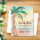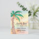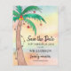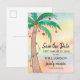 Cette carte postale reconstituée familiale Save the Date présente un palmier peint à la main sur un arrière - plan aquarelle. Facile à personnaliser. Aquarelle originale © Michele Davies.