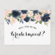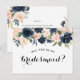 Demandez à vos amis et à votre famille de faire partie de votre mariage avec cette carte florale "Will You Be My Bridesmaid" qui présente des éléments floraux marine et roux avec script de calligraphie féminine. Des éléments correspondants sont disponibles. Carte de proposition de la partie nuptiale