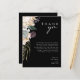 Nous avons conçu cette carte de remerciement de réception Fleurs blanches | Noir pour compléter votre mariage rustique et sombre sous les tropiques. Avec sa verdure bohème à l'aquarelle et ses fleurs modernes de l'hiver bohème, y compris la protéa, le dahlia et le lotus séché, le design est sûr de mettre en valeur votre thème vert et blanc, minimaliste et lunatique. Changez le texte et ajoutez une photo pour la rendre vôtre. N'oubliez pas non plus de parcourir le reste de la collection pour trouver des articles coordonnés qui rassembleront l'ensemble de votre mariage ! https://www.zazzle.com/collections/white_floral_collection-119896729923706651