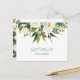 Elégante fleurs blanches et arrière - plan blanc bouquet feuille vert, personnalisable carte postale certificat cadeau design.