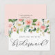 Jolie carte de proposition de femme de ménage à thème fleuri. Demandez à votre famille et à vos amis de faire partie de votre mariage avec cette carte personnalisée "Serez-vous ma demoiselle d'honneur". Il dispose d'une guirlande fleurie aquarelle de roses blanches et roses rousses et de verdure. Personnaliser en ajoutant un nom et un message