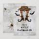 Carte d'Halloween fantaisiste imprimée sur un stock de carte postale plat, ce design fantaisiste présente des jambes de sorcières et des chauves-souris sur un arrière - plan de look vieilli. Vous pouvez conserver le texte tel qu'il est écrit ou modifier le modèle de texte avec votre propre libellé. Le dos de la carte a un trio d'araignées déplaisantes et de bugs rampant sur le design. Le graphique de jolies sorcières est original artwork©delightful-doodles.com.