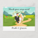 Mariage de golf Carte de remerciements pour golfeur avec mariée et marié sur le terrain de golf