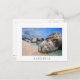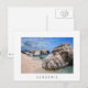 Carte postale des gros rochers sur la plage de sable de Cala Mariolu, située près de Cala Luna, le golfe d'Orosei sur l'île de Sardaigne, Italie avec une frontière blanche et le texte : "Sardaigne".