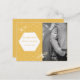 Félicitations à votre fiançailles ! Maintenant, il est temps de partager vos fantastiques nouvelles avec votre plus proche et le plus cher avec ce mignon miel abeille thème jaune et blanc hexagone motif coutume enregistrer la date! Customisez avec votre photo et vos détails préférés et vous êtes bien d'y aller! Cette carte fait partie d'une collection de mariages guidée et coordonnée appelée "Oh Honey Yellow Mariage" dans le magasin Celebrations Studio où il y a une gamme de papeterie, décoration et produits d'expédition mariages correspondants.