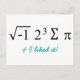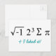 Aidez à célébrer la journée de Pi en envoyant cette carte postale à tous vos amis et membres de la famille. Ils adoreront votre humour mathématique signature à moins qu'ils ne comprennent pas les maths et alors ils seront juste ravis de recevoir une carte postale de votre part !