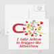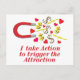 Carte postale avec une affirmation positive : JE PRENDS DES MESURES POUR DÉCLENCHER L'ATTRACTION. La "Loi si l'attraction" ne fonctionne pas à moins qu'elle ne s'accompagne d'une action vigoureuse, positive et déterminée. Cette action - associée à une visualisation joyeuse et positive du résultat souhaité - est l'ingrédient secret qui magnétise l'esprit subconscient pour manifester le résultat désiré. L'univers se conspire toujours pour aider ceux qui font une action réelle vers un rêve ou un but chéri. Le design a un aimant, des signes dollars, des coeurs rouges et roses et des éclairs. Donnez cette carte postale à un ami, un membre de la famille ou un collègue qui a besoin d'encouragement et de motivation - ou bien mettez-la en place là où vous pouvez vous-même la voir pour rester concentré et motivé. .