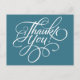 Cartes postales de script manuscrit fantaisie 'Merci' en Bleu Turquoise. Parfait pour les Mariages, Anniversaires, Noël, Douches ou toute autre occasion. Cartes postales "Merci" couleur bleue turquoise, si nécessaire, choisissez une autre couleur ou ajoutez votre propre texte imprimé, adresse ou nom de société dans l'onglet "Customiser".