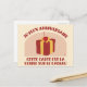 Vibrante et colorée, cette carte d'anniversaire humoristique présente un joli cadeau rouge décoré d'un ruban jaune et surmonté d'une cerise. Les lettres audacieuses inscrites en haut de la carte énoncent "Joyeux Anniversaire" tandis qu'en bas, on peut lire "Cette carte est la cerise sur le cadeau". Les teintes chaleureuses et le design minimaliste apportent une touche joyeuse et festive, idéale pour célébrer l'anniversaire d'un proche. Idéale pour ceux qui souhaitent ajouter une touche d’humour, cette carte peut être envoyée par des amis, des membres de la famille ou même des collègues. Que ce soit pour un anniversaire d'un parent, d'un ami proche ou d'un camarade de travail, elle saura toucher le cœur du destinataire tout en déclenchant un sourire. C'est le moyen parfait d'exprimer vos vœux de manière légère et joyeuse. Sourires garantis ! En offrant cette carte, le destinataire ressentira de la joie et de la bonne humeur dès qu'il la découvrira. La mention humoristique sur la carte souligne la légèreté de l'occasion et rappelle que les anniversaires sont des moments à partager avec un soupçon de rires, renforçant ainsi les liens affectifs.