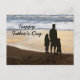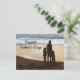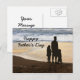 Un père est debout avec sa fille et son fils, regardant le coucher du soleil à la plage. Modifiez le texte de votre message personnel.