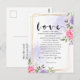 L'amour est patient, l'amour est bon. Il n'est pas jaloux, il ne se vante pas, il n'est pas orgueilleux. Il ne déshonore pas les autres, il ne cherche pas son propre intérêt, il ne s'irrite pas facilement, il ne tient pas compte du mal. L'amour ne se réjouit pas du mal, mais il se réjouit de la vérité. Il protège toujours, il fait toujours confiance, il espère toujours, il persévère toujours. L'amour ne manque jamais. 1 Corinthiens 13:4-8. L'amour est patient carte postale personnalisée, carte postale d'anniversaire de mariage, carte postale de mariage