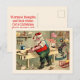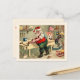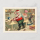 Une illustration vintage du Père Noël dans son atelier entouré de jouets. C'est l'étoffe d'une carte de Noël charmante à envoyer.