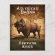 Une peinture d'un bison américain debout sur un terrain herbeux avec une carte vintage en arrière - plan.
