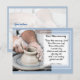 Un potier qui travaille avec de l'argile sur la roue du potier, avec des mots de l'hymne bien connu d'Adélaïde A. Pollard Ayez votre propre chemin, Seigneur! Prenez votre propre chemin ! Tu es le potier, je suis l'argile. Moissonnez-moi et faites-moi après votre volonté, pendant que j'attends, céda et encore. Ésaïe 64:8 - Mais maintenant, ô Éternel, tu es notre père; nous sommes l'argile, et tu es notre potier; et nous sommes tous l'oeuvre de ta main. Si vous préférez, l'image légèrement identique située au verso de la carte est facilement retirée.