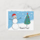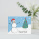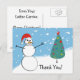 Cartes postales "Merci" du travailleur postal ou du porteur de lettres, avec bonhomme de neige dessiné par l'artiste et sapin de Noël sur une colline enneigée. Un moyen parfait et facile de dire merci pour les nombreux cadeaux de nos clients.