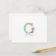 Carte à note plate avec un monogramme floral initial, lettre 'G' avec nom en dessous.