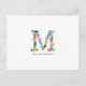 Postale Lettre florale Monogramme initial - M - Carte plat