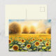 Capturez la beauté artistique de l'aube avec notre carte postale Sunflower. Cette carte postale présente un tableau magnifiquement éclairé d'un terrain de tournesol, entouré d'arbres et d'un lever de soleil fascinant. La représentation artistique évoque le charme serein des premiers matins dans la nature. Les couleurs vives et vives des tournesols apportent une touche d'éclat à vos salutations. Partagez un morceau de la beauté de l'aube ou utilisez-le pour ajouter une touche d'éclat de la nature à votre espace.