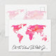 Postale Lieux Où Elle Va Citer Aquarelle Rose Carte Mondia