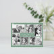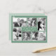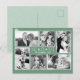 Photos de Noël carte postale avec place pour six photos et conception de flocon de neige. Sage vert arrière - plan couleur avec des cadres blancs minces autour de chaque photo. Un simple salut "Amour, joie, paix" et une ligne pour une signature au centre en fait le salut parfait pour une grande famille. Les modèles photo sont orientés dans les deux sens avec deux horizontales, deux verticales et deux carrés. L'une ou l'autre orientation fonctionnera pour les modèles carrés. Reverse a un léger arrière - plan de flocon de neige et est vide pour votre choix de texte et d'adresses.