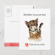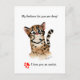 Ce mignon chat ocelot aquarelle dessiné est assis sur cette carte postale avec un regard amoureux drôle. Les jeux de mots en haut : "Mes sentiments pour toi sont profonds..." Texte en bas de la carte postale : "... Je t'aime un Ocelot !" et une empreinte de patte en forme de cœur rouge. Au dos, il y a un petit ocelot et un cœur. Le texte au dos indique : "... Pas juste un oce-petiot, mais un ocelot !" Les couleurs sont marron, noir, rose et rouge, avec des yeux bleus. Vous pouvez modifier et changer tous les aspects de ce design. Cliquez sur le bouton Personnaliser pour changer la police, le style ou la taille du texte. Vous pouvez également choisir une couleur de fond différente.