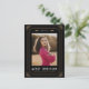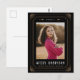 Cette carte faire-part 2023 a été inspirée par des cartes tarot et présente des accents or sur un arrière - plan noir encadrant une photo du diplômé. Le nom du diplômé et l'école sont affichés sur le bas de la carte et la date est en chiffres romains le long du haut entre les éléments célestes, ajoutant encore au thème magique. Le dos est configuré pour être prêt à envoyer par la poste en tant que carte postale, une excellente option de budget.