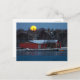 Ancien pavillon en bois rouge avec décor de pleine lune sur la mer Baltique arrière - plan et glacée au premier plan à Lauttarsaari, carte postale Helsinki.