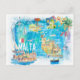 Postale Malte Carte de voyage illustrée des îles avec rout
