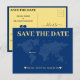 Monde bleu et jaune mariage enregistrer la carte de date pour un mariage de destination. Personnalisez-le avec vos informations d'événement.