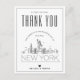 Une excellente façon de rendre hommage à l'invité qui a voyagé si loin de son chemin pour vous voir, dans cette belle ville. Cette carte postale de remerciement spéciale est adaptée aux invités qui ont assisté à votre mariage dans la belle ville de New York. Il dispose d'une ligne d'horizon stylisée de la ville sur le devant de la carte. Au contraire, vous trouverez un endroit pour votre propre message unique. Utilisez les fonctions de personnalisation pour même ajouter une photo si vous le souhaitez.